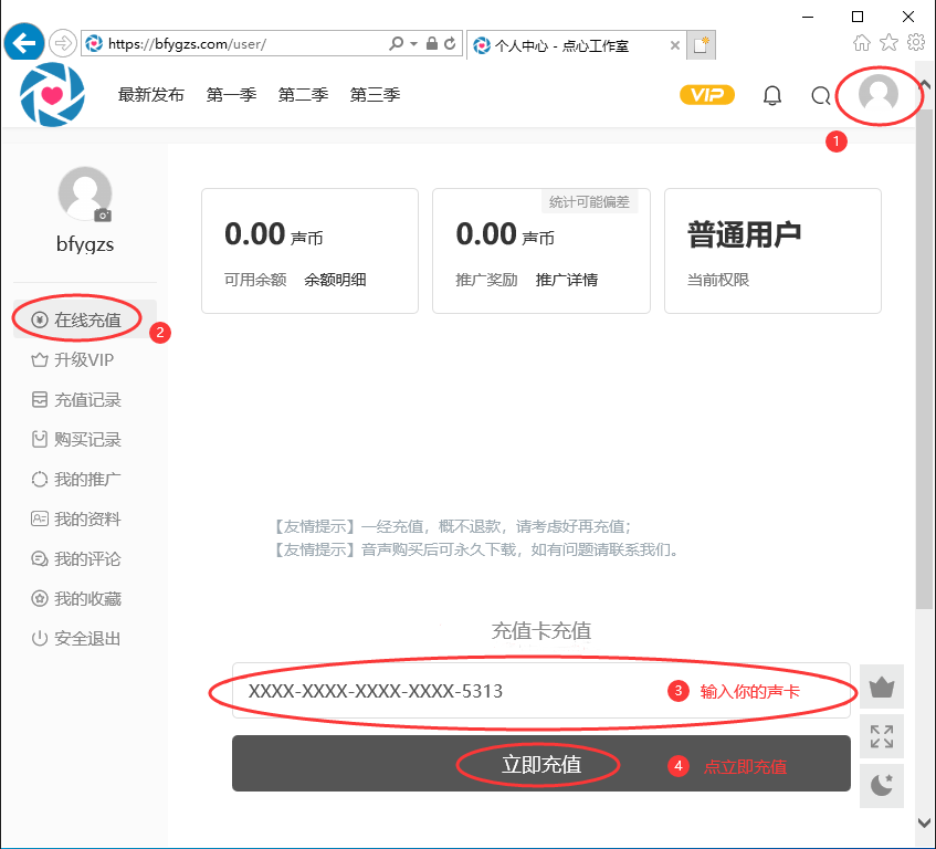 充值&声卡 教程 最新发布 推广 若有问题请联系客服! 充值&声卡 关于充值 1、购买声卡充值; 2、联系客服充值。 账号注册&声卡使用教程: 点心工作室出品,请勿泄露传播。 3 37 点心(小烟.步非烟)